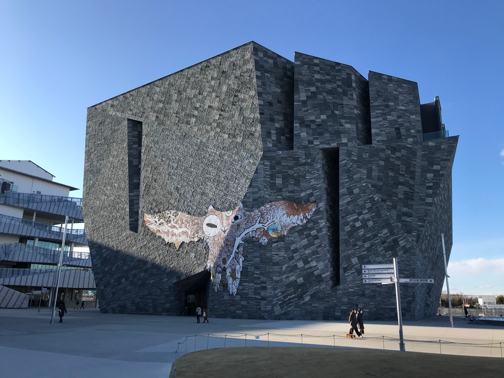 Strax väster om Tokyo syns även den här pjäsen ovan, som ser ut att vara hämtad ur Minecraft eller möjligen något från spelutvecklaren Team Ico (Shadow of the Colossus). Det är faktiskt mycket riktigt en koloss, tillverkad i 20 000 bitar av granit som väger ungefär 50-70 kilo vardera. Inuti finns ett museum (Kadokawa Musashino Museum), mestadels tillägnat anime och manga, i form av teatrar och bibliotek. Museet är del av ett nytt affärskomplex – Tokorozawa Sakura Town – vars hotell, restauranger och caféer sporadiskt fick öppna upp under 2020.