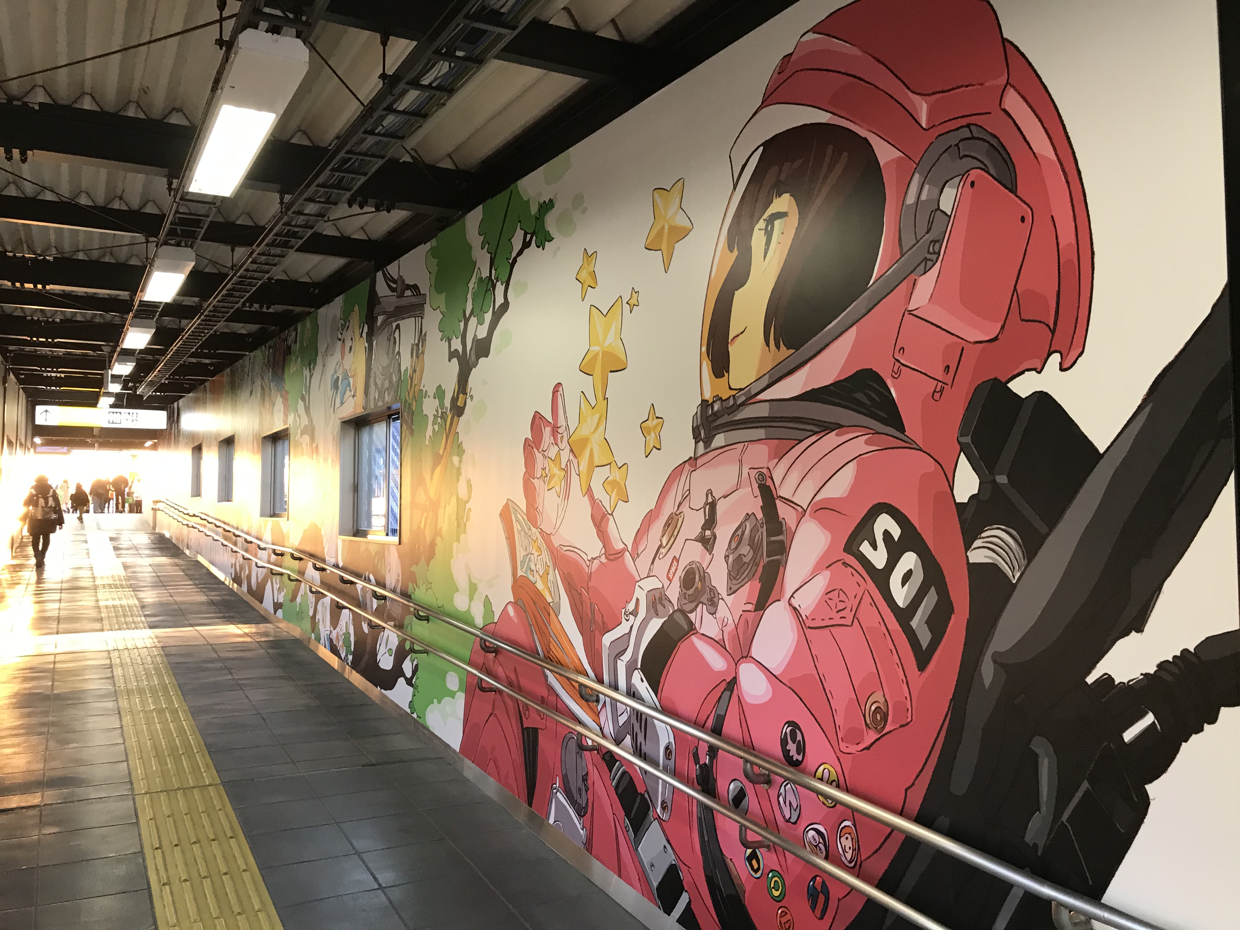 Intill kolossen syns även helgedomen ovan, också den designad av Kengo Kuma. Den syftar delvis till en pilgrimsfärd i anime och mangans tecken, där LED-upplysta animerade brunnslock leder besökaren från närmsta tågstation (Higashi-Tokorozawa) till Sakura Town. Helgedomen går under namnet Musashino Reiwa Shrine, där Reiwa (令和) är namnet på den nuvarande tidsperiod som inleddes när Japan fick en ny kejsare 2019. Perioden mellan 1989 och 2019 kallades för Heisei (平成), och för varje ny period börjar man räkna om årtalen från början. Vi är alltså just nu inne i år 3 enligt den japanska tideräkningen.
