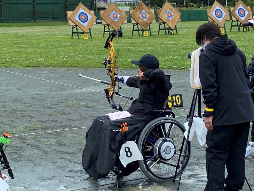 Ändå bestämde sig Okazaki för att satsa på bågskytte. 2013 spände hon bågen för första gången och därefter har det blivit hennes nya stora passion i livet. Hon sitter i rullstol och har utvecklat en teknik och ett redskap som gör det möjligt för henne att hålla pilen och bågen utan att det drar för mycket muskler. Det tog några år, men nu är hon en av landets främsta.