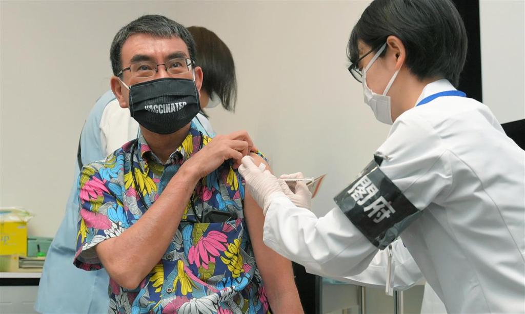 Som vaccinminister har Kono försökt att distansera sig så mycket som möjligt från den nuvarande regeringen. Hans strategi har varit att inte lova för mycket. På frågan om vilka biverkningar vaccinen kan ge har han varit öppen med alla risker som finns. På frågan om vaccineringen av vuxna skulle bli klar innan OS var han tydlig med att det inte ligger på hans bord (att bry sig om OS). Någorlunda skickligt har han distanserat sig från de yttersta ansvariga och andra aktörer associerade med pandemihanteringens brister och de olympiska spelen, däribland premiärministrarna Abe/Suga och Tokyos guvernör Yuriko Koike.