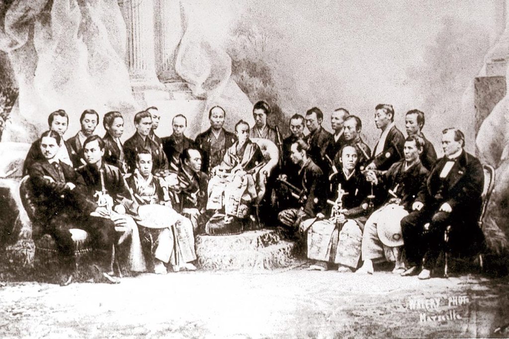 Med på resan till Europa (1866) följde bland andra Tokugawa Akitake, halvbror till Japans sista shogun, Tokugawa Yoshinobu. Akitake var där i egenskap som ”särskilt sändebud” och representant för Tokugawashogunatet. Shibusawa var hans assistent och revisor. Tidigare hade han tjänstgjort som vasall åt Tokugawa Yoshinobu, innan denne blev ny shogun 1866. I Paris mötte de Napoleon III och i Belgien Leopold II. Det skulle även träffa Drottning Victoria med flera. Resan förlängdes ända till december 1868, och när de återvände var Tokugawa inte längre shogun.