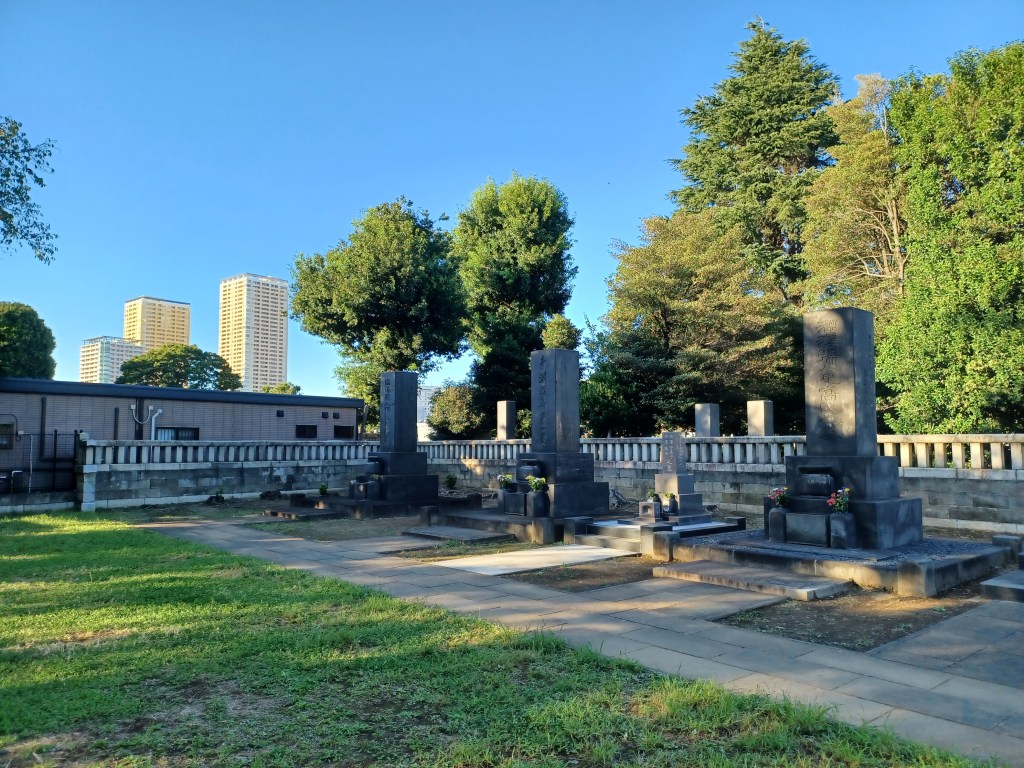 Bild 2 är Tokugawa-familjens gravplats. Yoshinobu har stenen längst bak i mitten till vänster.