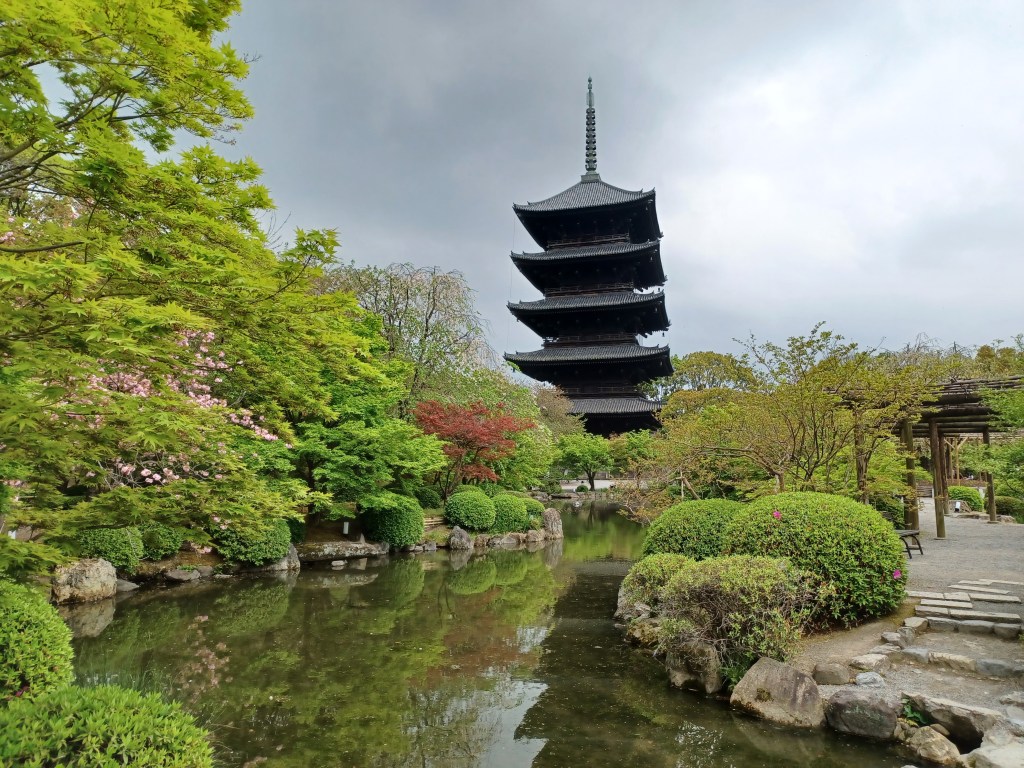 Ett betydande tempel för Kukai (Kobo Daishi) var To-ji i Kyoto. Templet skulle bli huvudcenter för hans Shingon-buddhism i en tid då Kyoto blev huvudstad från Nara och templen i staden ännu syntes få. Templets trädgård övervakas av en 55 meter hög pagoda, mera känt som Japans högsta trätorn. (Bilden är från våren 2022)